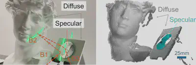 The fields of optical 3D metrology and computational imaging have spawned several high-quality 3D imaging principles in the last decades, with some of them able to reach accuracies in the 100μm range or even better. However, virtually all measurement principles reach their best performance either on purely diffuse or purely specular surfaces. Surfaces with “mixed reflectance” properties are still presents a challenge for current measurement principles. This is a contradiction, as only a fraction of objects around us have purely diffuse or purely specular surfaces. In particular, industrial inspection applications frequently need to deal with “shiny” metallic or painted parts, which present severe problems to state-of-the-art imaging solutions.